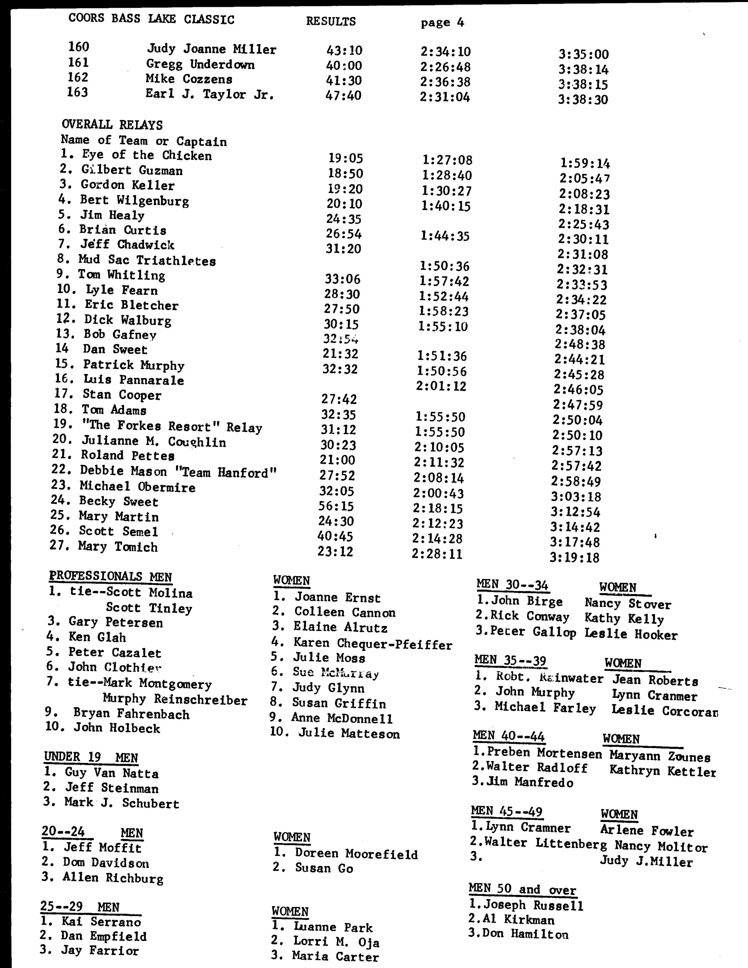 160-163 & RELAY RESULTS